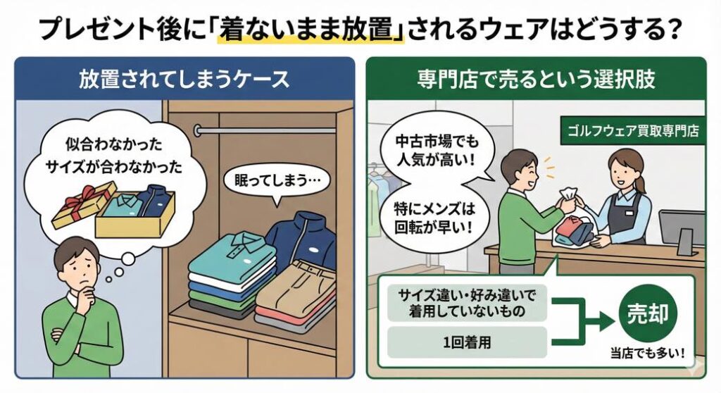 実はプレゼントされたゴルフウェアが、「似合わなかった」「サイズが合わなかった」