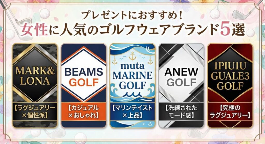 選び方のコツを掴んだところで、いよいよ「これを贈れば間違いなし!」というおすすめブランドをご紹介します。 今回は、特に感度の高い女性ゴルファーから支持されている5つのブランドをピックアップしました。