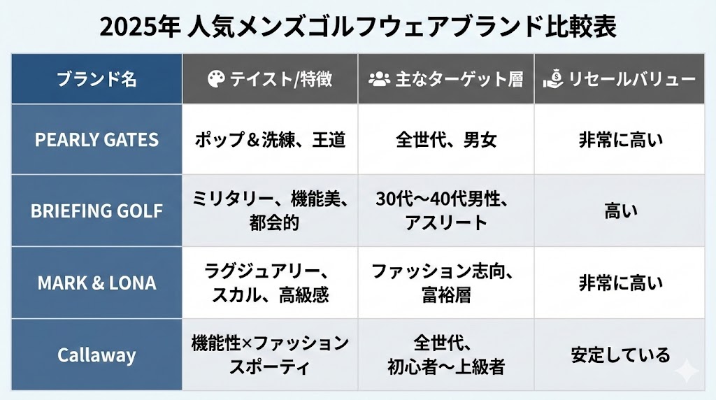 ゴルフウェアは、ファストファッションとは異なり、ある種の「資産」としての側面を持っています。特に先ほど挙げた「パーリーゲイツ」や「ブリーフィング」などは、多少使用感があっても欲しいというユーザーが後を絶ちません。